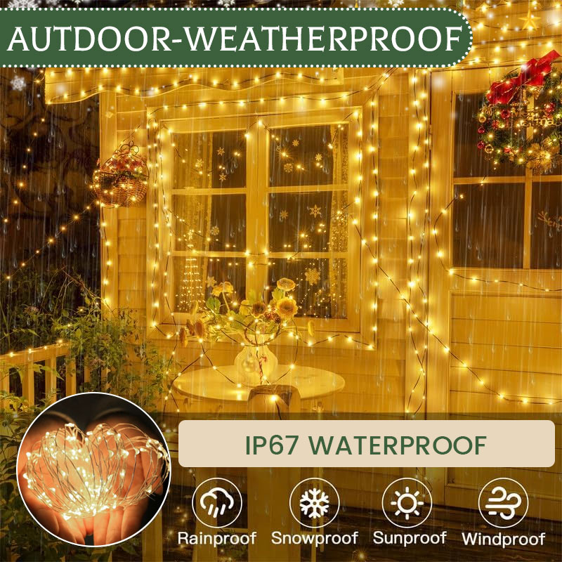 Ren kopparledningsförmåga: Denna ljusslinga är tillverkad av ren koppartråd och säkerställer optimal ledningsförmåga för ett stadigt ljus, även över längre längder, och fungerar utmärkt i en mängd olika miljöer. 🔋⚡