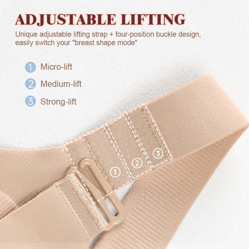 Innovativa justerbara lyftremmar + spänne med fyra lägen, ändra enkelt din bystprofil:
