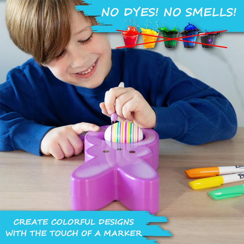 Placera bara ägget i hållaren och använd pennorna för att skapa mönster, namn eller festliga designer. Kul för både barn och vuxna – inga komplicerade verktyg behövs.