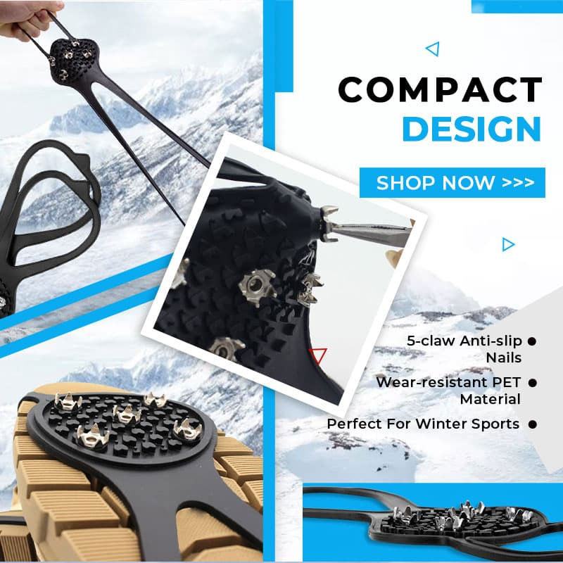 [5-klors halkfria spikar] Slitstarka 5-tandade stålspikar kan ge utmärkt grepp i olika terränger eller andra tuffa förhållanden. Spikarnas strategiska placering säkerställer en jämn viktfördelning och varaktig komfort och hållbarhet.